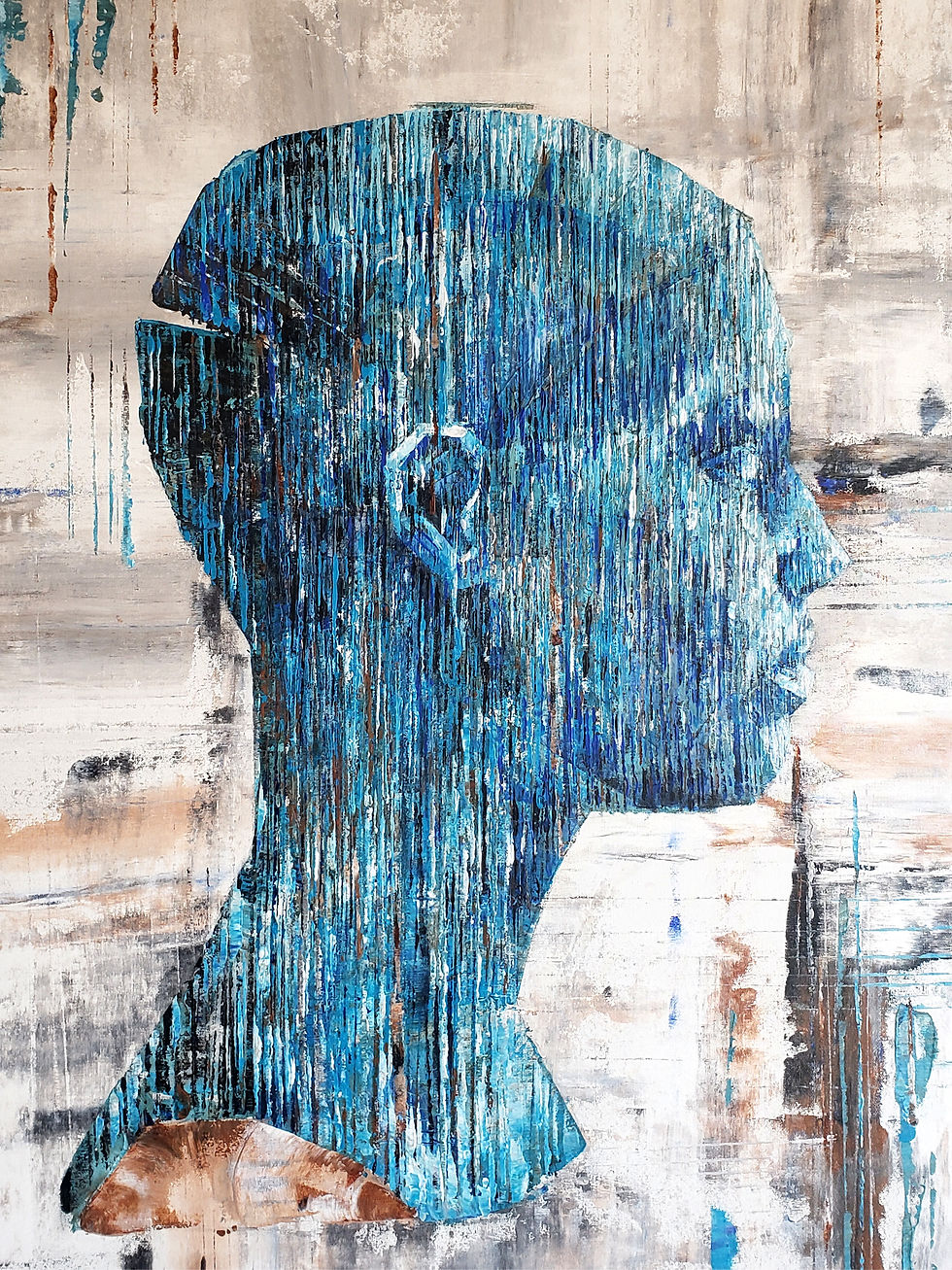 My work evolves around experimental painting using different mediums and techniques. My paintings are an exploration both of the outside world and my inner self attempting to unravel or unveil the mystery of our human existence. My paintings center around themes related to human beings both in the visible physical form, and the ethereal invisible dimension creating balanced and contemporary representations which merge abstraction and figuration. My interest builds around the creation process of the image, by revealing the layers that will bring the final painting together, giving a sense of movement, energy and transformation. Lively human faces, busts, and bodies are the result of repetitive gestures and the superimposition of rich layers of paint or sutil transparencies; evoking a feeling of an uncertain stage of the image and of the impermanence of matter and life itself.
